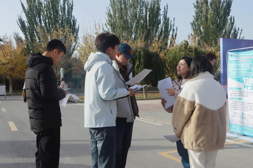 在工科实训大楼前举行2023年秋季“土建类、水利类”专场招聘会。校党委常委、副校长林松涛到现场检查指导工作,招生就业处、水建院相关负责人参加。