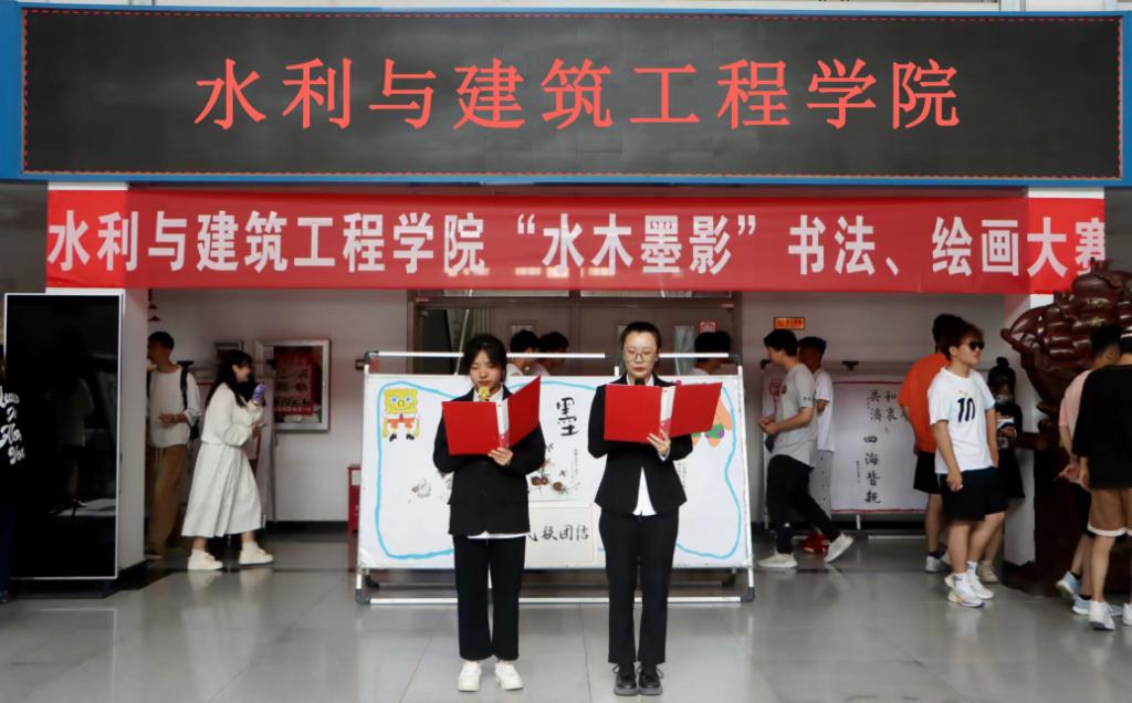 于工科实训楼大厅开展了“水木墨影”书法、绘画、摄影、手工作品展览活动。