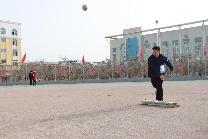 看到铅球运动员们的大力抛投,在他们手中,沉重的铅球划出圆润的轨迹。