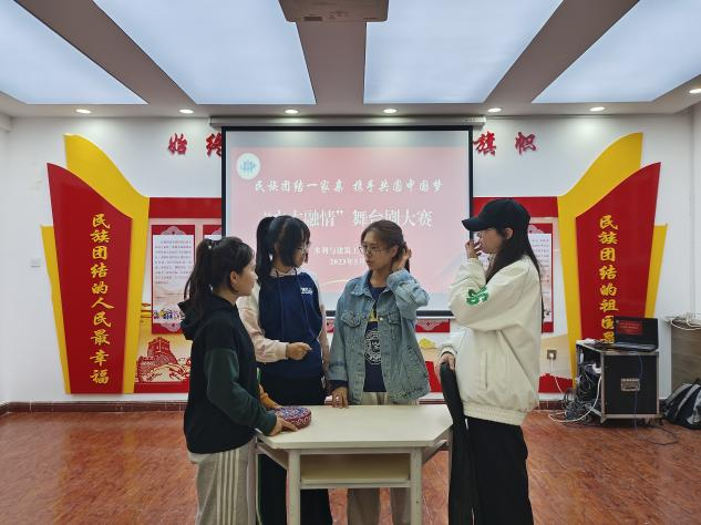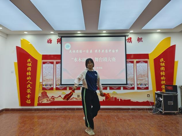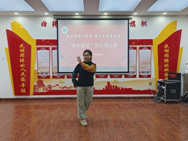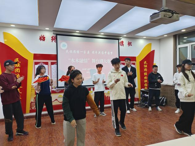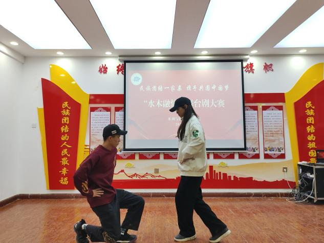 于西区七号楼三楼“民族团结进步育人阵地”举办以“民族团结一家亲,携手共圆中国梦”为主题的“水木融情”舞台剧活动。
