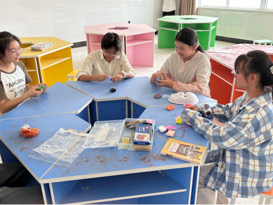 大学“童心筑梦”三下乡志愿服务队在十三团第二中学开展手工实践活动。志愿者带着超轻粘土、陶泥等材料,和该校学生一起参加“指尖创作”活动,通过陪伴送温暖,丰富乡村孩子的暑期生活。