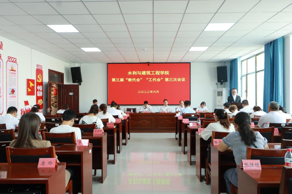 6月26日上午,学院第三届“教代会”、“工代会”第三次会议在工科实训大楼一号会议室召开。学院党委书记朱连勇,党委副书记、院长王兴鹏,副书记李新,副院长黄维雄以及教师代表、学生代表和特邀代表共47人参加会议。会议由李新主持。