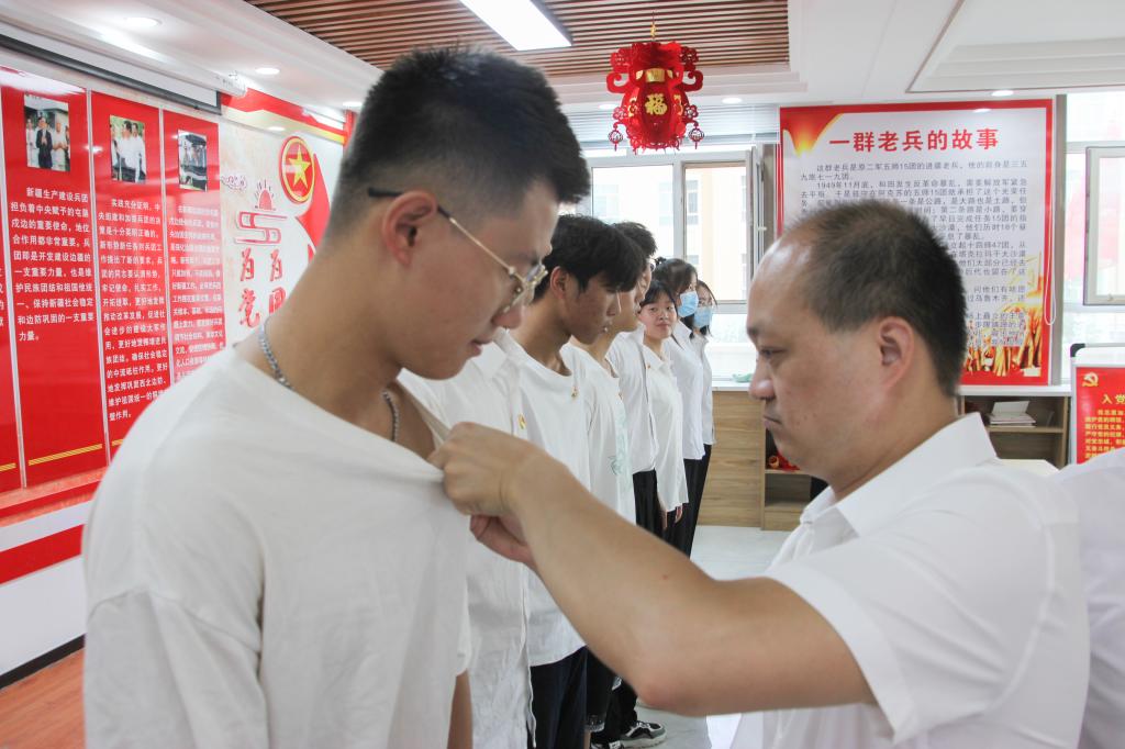 活动伊始,学院党委委员为新党员佩戴党徽,这是一种鞭策,也是一种激励;是一种精神的传承,更是一种奋斗的延续,新党员的自豪感、荣誉感、责任感、使命感油然而生。