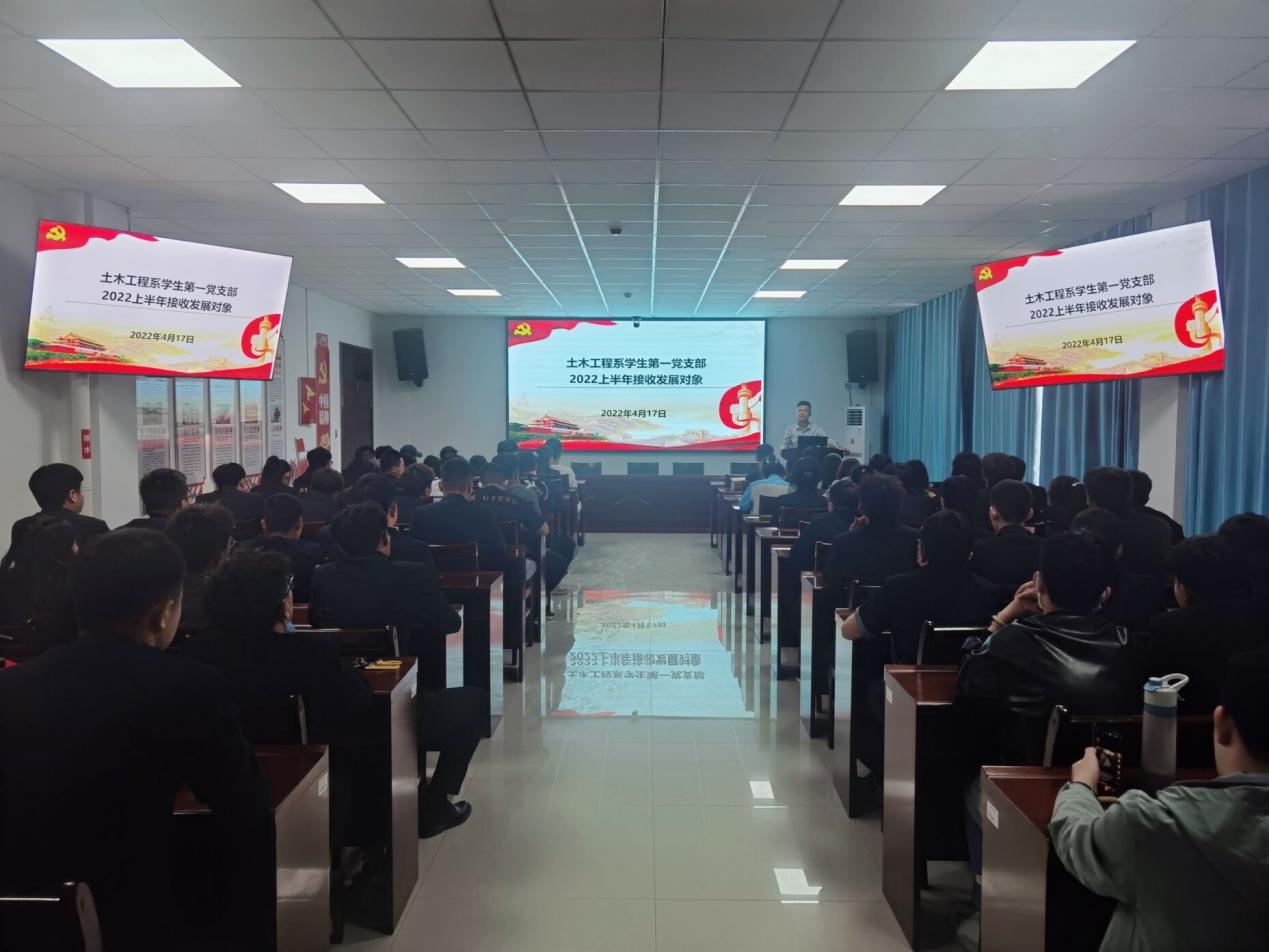 4月17日下午,土木工程系学生第一党支部在工科实训楼一号会议室,召开了2022年上半年党员发展对象接收大会。此次会议由孟旭波主持。