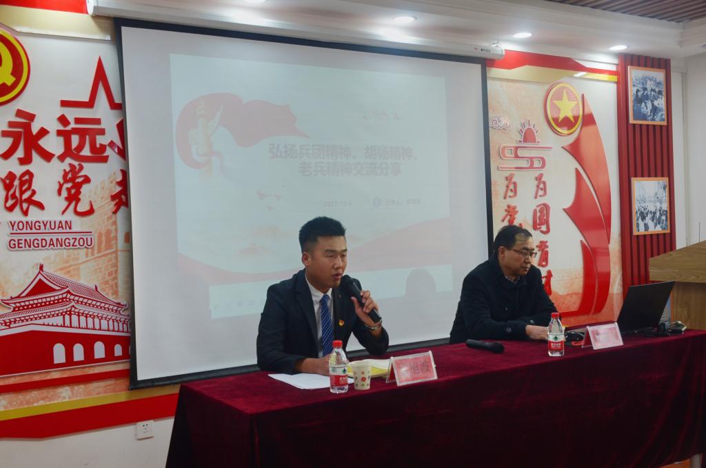 为深入推进党史学习教育,传承红色基因、弘扬胡杨精神,12月4日下午,胡杨导航工作室举办胡杨精神育人--名师思政导航第二课,邀请“弘扬兵团精神和胡杨精神、老兵精神时代新人”、动科院党委委员、动医系党总支书记李有文教授主讲,活动由胡杨导航工作室成员孟旭波主持,在工作室举行。