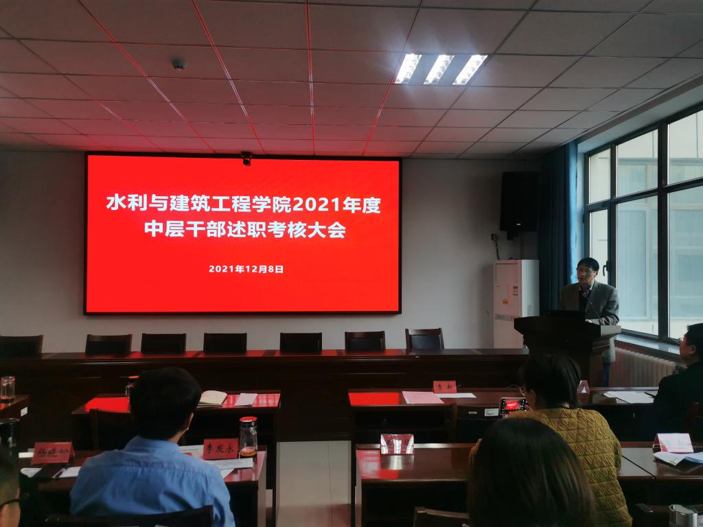 召开2021年度中层干部考核评议总结大会。会议由学院党委副书记李新主持,学院领导、中层干部和教师代表30余人参与。
