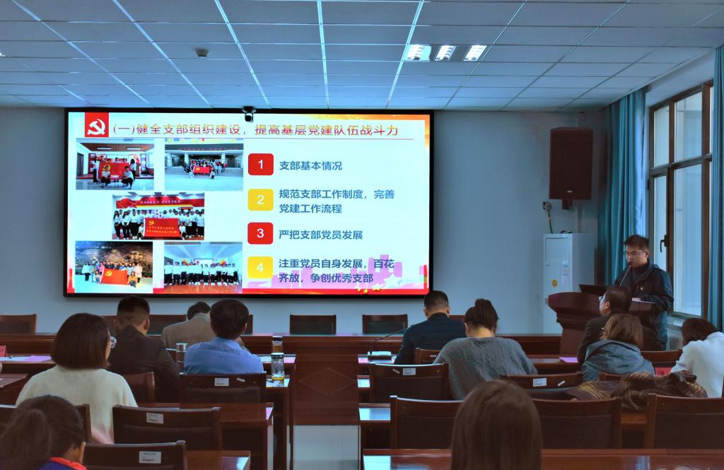 在工科实训大楼一号会议室,召开2021年度党支部书记抓党建工作述职评议大会。会议由学院党委副书记李新主持,学院领导、党支部书记、党员代表等20余人参加。