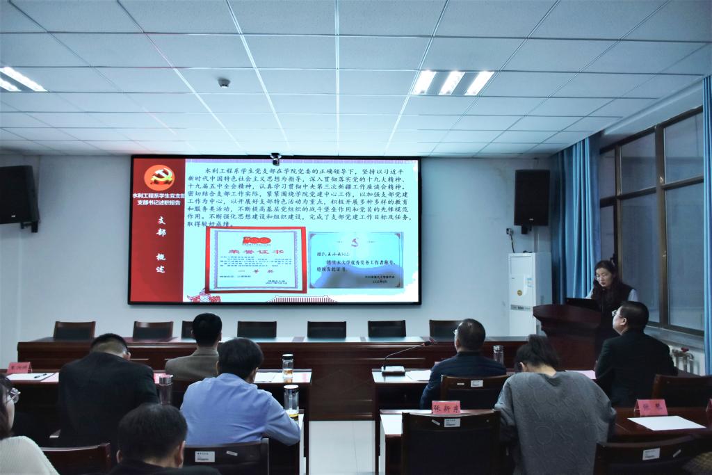 土木工程系、水利工程系、建筑规划系、测绘工程系、环境工程专业教工党支部书记首先进行述职。5位支部书记分别介绍了本支部2021年度组织的各项支部活动,分享了自己组织党建活动,积极动员教工党员参与组织生活的经验,同时也提出了支部建设中存在的不足,包括发展新党员困难、党员各项考核评估做得不到位等问题。学院领导对各教工党支部书记的述职报告做出了点评,在肯定成绩的同时也希望各党支部能够继续加强建设,更好地发挥基层党支部的战斗堡垒作用。