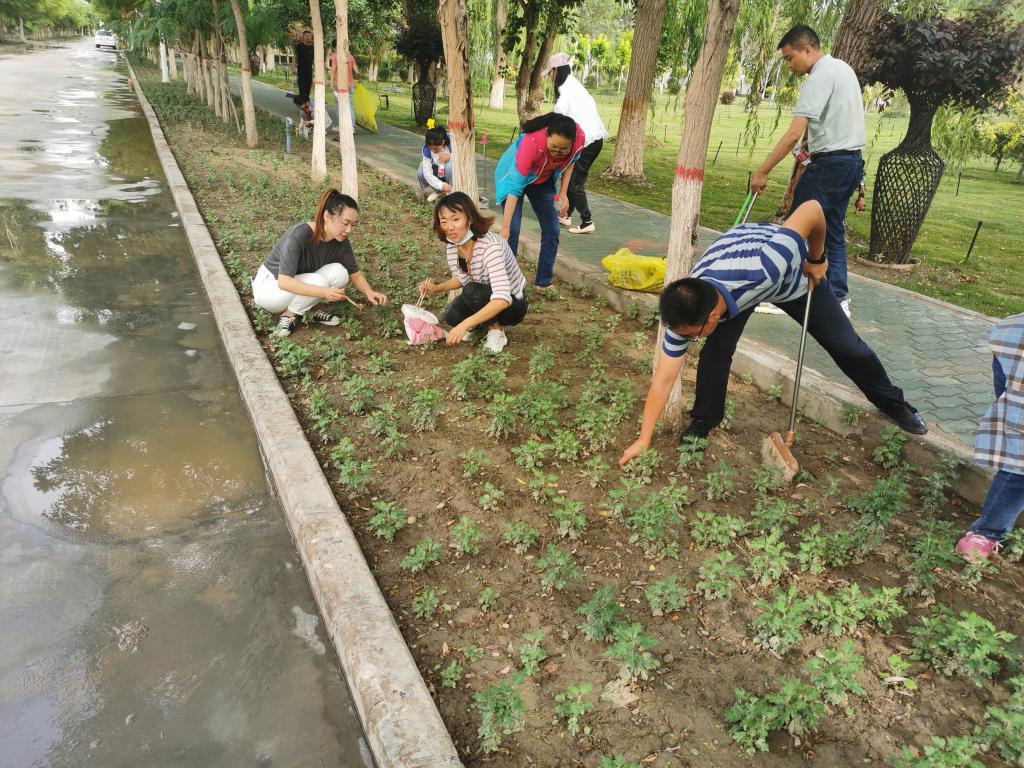 2021年7月19日下午,学院领导带领全院在校教职工开展了“学党史•我为群众办实事”美化校园环境整治活动。
