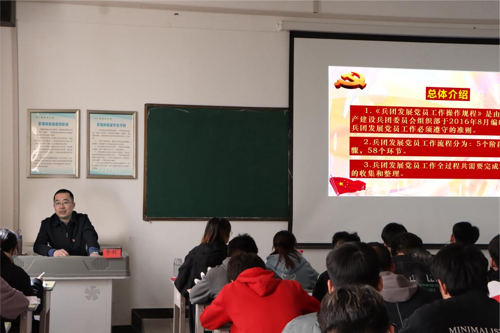 党委副书记李新为第69期入党积极分子讲述题为《党员发展流程》的党课,在工科实训大楼南513室。