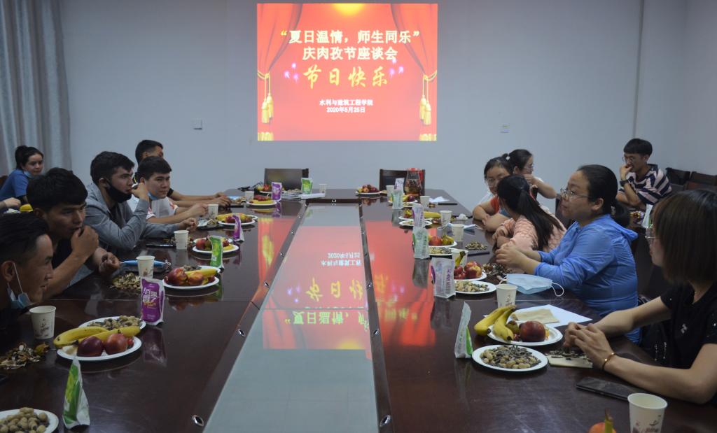 于5月26日晚在工科实训大楼二号会议室召开“夏日温情,师生同乐”庆肉孜节座谈会,师生共计22人参加。