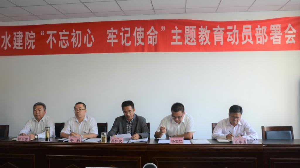 党委书记熊仁次做动员讲话,并代表学院党委对扎实开展“不忘初心、牢记使命”主题教育提出了三点要求:一是抬高政治站位,理清“为什么”的思想认识;二是领会核心要义,弄清“抓什么”的基本内容;三是加强组织领导,细实“怎么办”的具体措施。