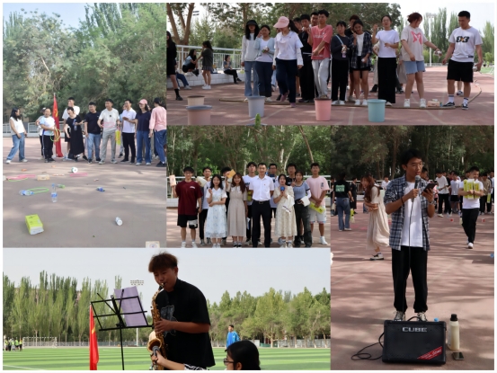 活动在各族师生《拔河》《同心击鼓》热身运动中拉开帷幕,趣味游戏《投壶》《惊喜套圈》小游戏轮番开始,现场氛围满满、一片欢声笑语。最后,活动在赵文博歌声中、王宇波萨克斯吹奏里迎来高潮。