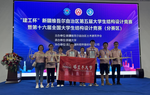 杨保存副院长带领2支代表队参赛。代表队经过连续3天模型制作、答辩、加载等环节比拼,由土木工程系赵成、王荣两位老师指导高善雪、陈远、赵雪汝制作完成的“塔河三桥”模型,以自重218.9克顺利通过加载斩获一等奖。由土木工程系韩志强老师指导殷宗涛、刘波波、王博制作完成的“胡杨桥”斩获三等奖。全国大学生结构设计竞赛是土木工程学科培养大学生创新精神、团队意识和实践能力规模最大、水平最高的学科竞赛。长期以来,学院高度重视学生创新精神和实践能力培养,为学生参加各类竞赛搭建创新平台和实验室,使师生在各类竞赛中崭露头角,取得了较好成绩。