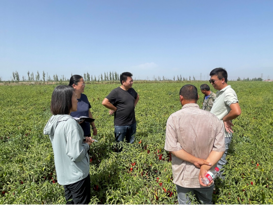 来到22团2连,时下正值当地支柱产业辣椒丰收在望,通过现场调研的方式了解当地主要种植作物色素辣椒的长势及预期产量;最后针对即将到来的秋冬灌在灌水方面进行了建议与指导,确保来年的土地墒情稳定。
