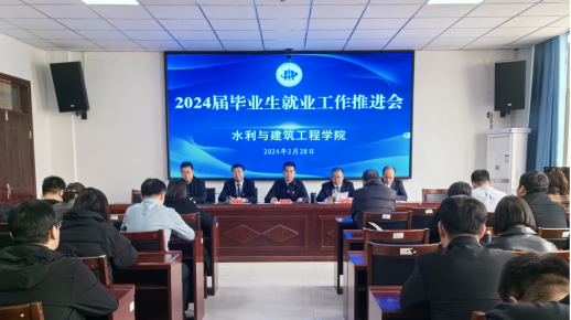 在工科实训楼一号会议室召开2024届毕业生就业工作推进会,院领导和全体教职工参加了本次会议,会议由党委副书记李新主持。