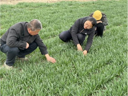 在尉犁县31团11连,管瑶教授深度了解小麦抽穗情况,针对选肥用肥、滴灌带铺设、种植密度等方面提出相应意见及建议。
