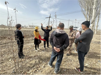 团队成员来到22团9连,重点关注苹果树间作辣椒,针对水肥利用这一农业生产实际问题,给予技术指导。