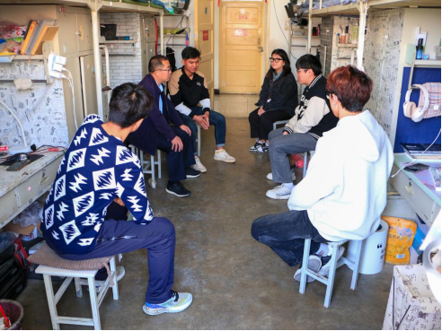 党委副书记李新走进学生宿舍,进行走访慰问。辅导员、班主任相关人员陪同。