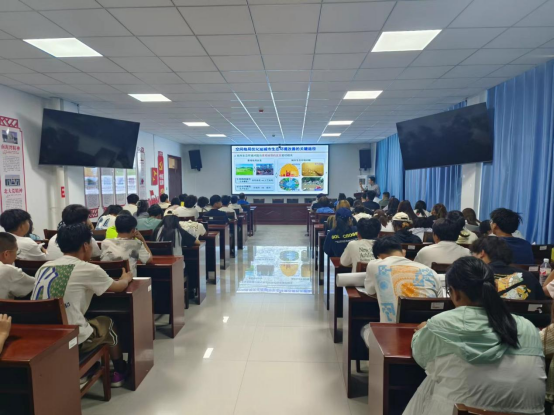 副院长杨保存主持,学院援疆干部黄维雄、中国科学院生态环境研究中心助理研究员钱雨果等5人、水利与建筑工学学院建筑规划系全体师生以及100余名学生参加。
