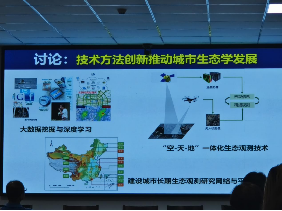 周伟奇老师以城市化的生态环境影响为背景,从城市空间格局量化方法、城市景观格局演变的热岛效应和复杂系统与多学科交叉等几个方面和大家讨论了自己在城市景观格局和生态环境影响方面的工作和思考。周伟奇老师指出,高温/干旱位居自然灾害致死率首位,然而,在全球变暖和城市热岛效应叠加的影响下,城市将面临频率更高、强度更大的极端高温天气。随后,周伟奇老师提出“空间有限,如何优化绿地空间,提升降温功能与效应”的科学问题,阐明城市绿地空间配置对热岛效应影响的作用机理,进一步探讨城市绿地空间配置优化方案。最后,周伟奇老师强调城市生态学研究要与城市规划、设计、管理交叉融合,从现实问题提炼科学问题,形成人与自然和谐共生的思维模式,以技术方法创新推动城市生态学发展。