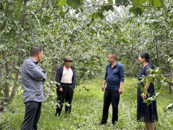 管瑶教授团队深入四团各连队对整体种植结构、作物品种、灌溉方式、灌溉次数、灌水时间以及主要作物玉米和杏树的产量进行调研,对当前上游水源含沙量大、含盐量大引起的灌溉问题给出建议,并进一步明确推广高效节水滴灌技术帮扶需求。