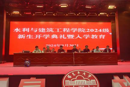 2024级本科生新生开学典礼和入学教育举行。学院党委副书记李林,环境与工程系党总支书记李发永、水利工程系党总支书记孙海燕、土木工程系主任王成、建筑规划系党总支副书记胡雪薇、测绘工程系高文信、2024级新生班主任、辅导员出席开学典礼,团委书记李同玺主持典礼。学院党委副书记李林为2024级本科新生讲授开学第一课。