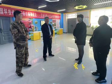 在连村共建单位焉耆县北大渠乡太平渠村,贺兴宏教授一行在驻村第一书记的引导下,参观了村委会建设的科技展览室。在展览室中看到村党支部为孩子们搭建的接触科技、探索科技的优质平台,团队成员商量为孩子们提供更加丰富多样的一些物资,包括科普读物、绘本图书、手工制品等,为他们的成长贡献一份力量。