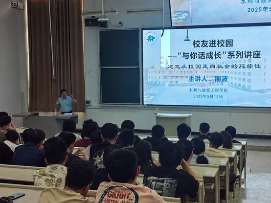 特别邀请2004届杰出校友、国家注册监理工程师周波返校,开展"校友进校园 与你话成长"专题职业发展讲座。学院党委副书记李林、毕业班班主任及200余名学生参与活动。