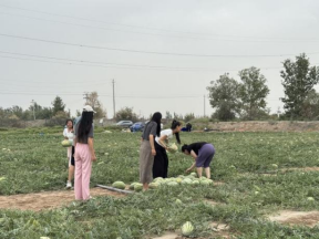 现代农业示范基地西甜瓜示范田举办了一场“西甜瓜田摘瓜仪式及成果品鉴”活动。岗站团队成员、南疆各地州种植户代表及当地农业部门相关人员共同参与了此次活动。