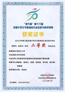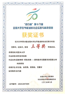 作品“太阳能驱动的盐碱地洗盐智能循环灌排装置”获得二等奖;作品“固废焕新·绿色先锋﹣﹣高性能多元固废泡沫混凝土材料的研发”获得三等奖。
