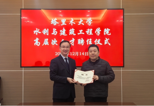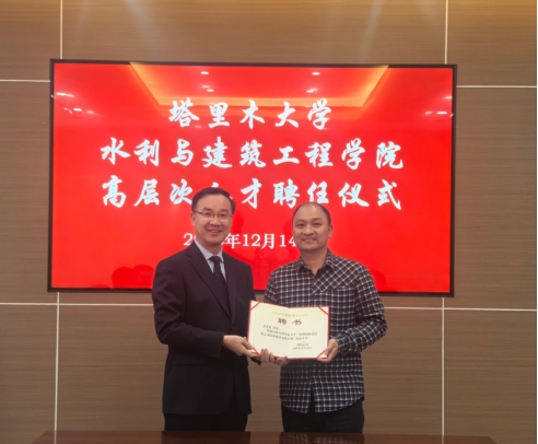 宣传片,直观感受学校“艰苦奋斗、自强不息、扎根边疆、甘于奉献”的胡杨精神及“用胡杨精神育人、为兴疆固边服务”的办学特色。随后,闫祥林校长致辞,强调人才是学校高质量发展的核心驱动力,此次高层次人才加盟是水建院落实学校“人才强校”战略的关键举措,希望两位教授充分发挥学科引领作用,助力学校服务南疆水利建设与乡村振兴。