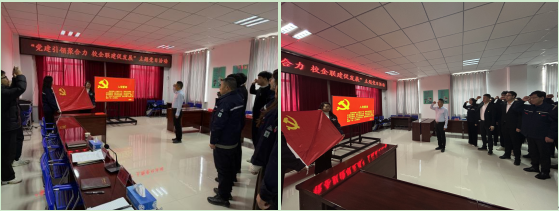 参观结束后,全体党员身着规范着装,佩戴党员徽章,整齐列队,面向党旗庄严肃立。在水务集团党总支书记陈兵的领誓下,大家高举右拳重温入党誓词,铿锵有力的誓言回荡现场,进一步强化了“保障民生、服务发展”的使命担当,凝聚了校企双方党员立足岗位、协同奋进的思想共识。