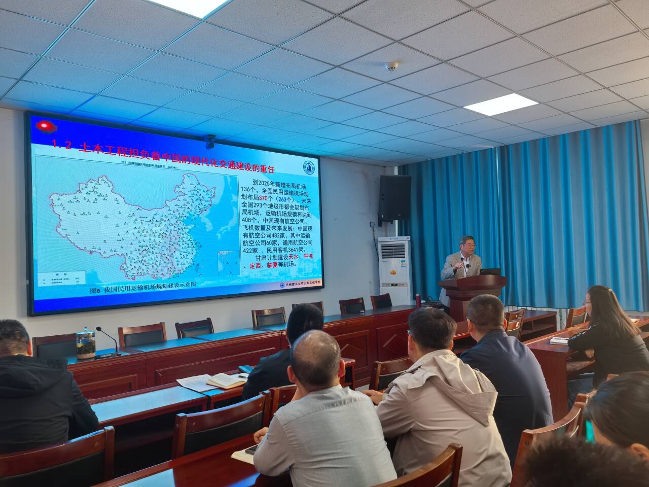 朱彦鹏教授立足国家“十四五”规划与《国家水网建设规划纲要》,系统阐述了土木工程在我国现代化建设中的核心作用。他通过数据指出,土木工程肩负着建设新型城市交通体系、工业体系、环保设施及现代化建筑的重任。结合国家“两重”项目进展,强调土木工程在交通强国战略中具有不可替代的地位。